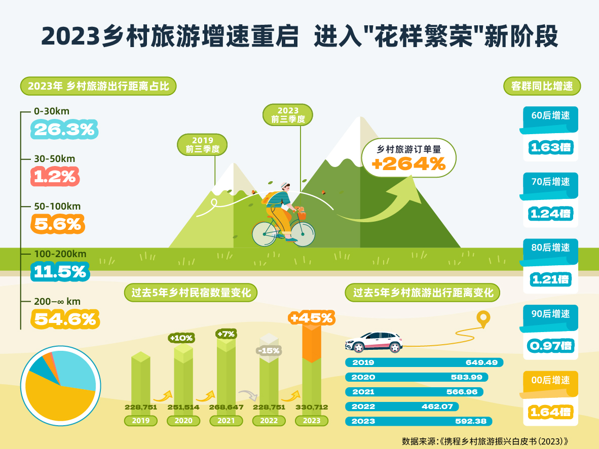 12月14日,携程集团发布《携程乡村旅游振兴白皮书(2023)》,对乡村旅游行业趋势、政策落地阶段性后果进行解读。阐述袒露,2023年携程平台乡村旅游订单量复原到疫情前2.6倍,同期民宿行业的发展不仅重启增长,还创造了往时5年来民宿数目最大增幅,达到历史高点。