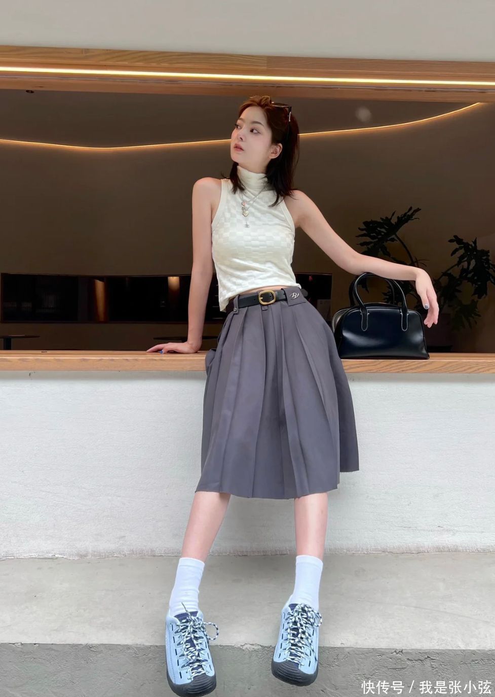 细节点①搭配短袜,更好的分割腿型线条