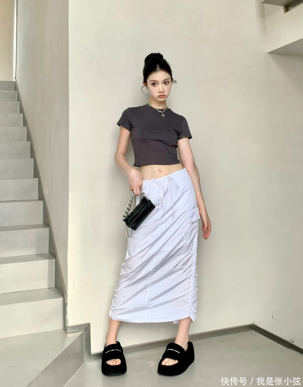 许多东谈主对于露脐裙齐有尽头大的曲解,总认为这种低腰线花式的裙装,穿在身上会相称显腿短,而且毫无好意思不雅进度。可本体上,并不是腰线越高就越显腿长,致使太高的腰线反而会穿出尽头违和的嗅觉;比较之下,裙装腰线刚好显现肚脐和胯部位置,反而能穿出腿长的遵循。