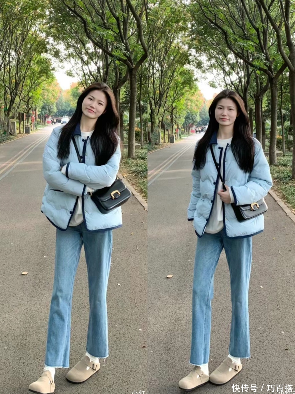 像博主一样,既能搭配淡色棉服又能搭配深色棉服,修身九分牛仔裤是为数未几价钱和实用价值成正比的。